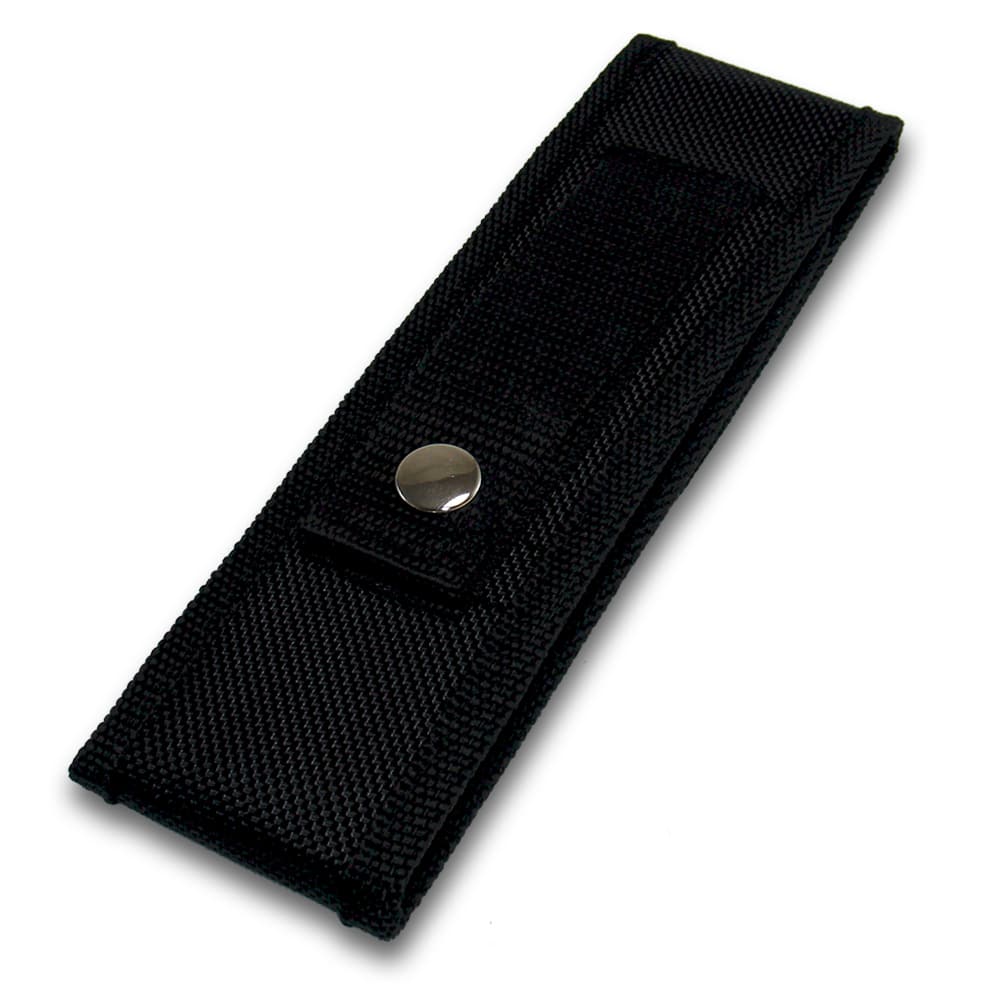 Protect Your Flashlight and Gear This LED flashlight holster with belt attachment featuring a long retention flap with Velcro closure. The quick-detach belt loop allows user to attach or remove holster without having to remove belt. Fits most medium size flashlights, tools and knives. Made of heavy-duty nylon to help keep your gear protected from damages.